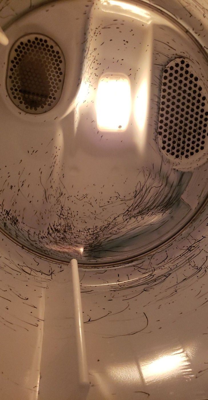 5. همسر این خانم یک تیغه در جیب شلوار خود جا گذاشته و آن را در ماشین لباس شویی انداخته است.