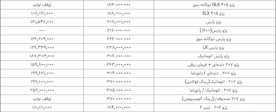 اولین قیمت محصولات ایران خودرو در سال 1400 اعلام شد
