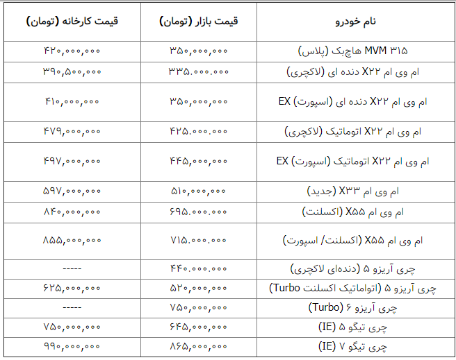 جدیدترین قیمت محصولات مدیران خودرو در نوروز 1400 اعلام شد