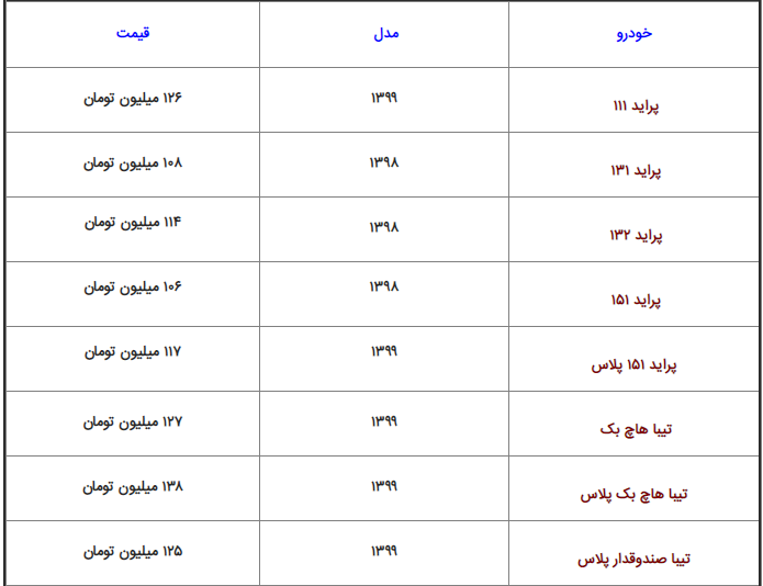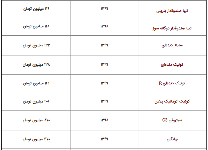 جدیدترین قیمت محصولات سایپا 5 فروردین 1400