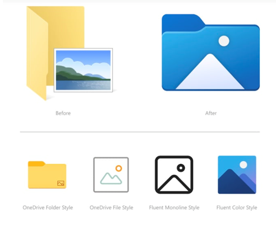 مایکروسافت جهت سازگاری بیشتر در ویندوز 10 جهت پوشه ها را تغییر داده است. در همین حال، طراحی های جدید به منظور تسهیل تشخیص آنها در یک نگاه ساده است (دیگر پوشه های زرد رنگ متعدد برای انتخاب وجود ندارد). این غول فناوری همچنین آیکون های سطل آشغال و Local Disk را نیز به روز کرده است تا به جای حالت اوریب، رو به جلو باشد. مایکروسافت اعلام کرده است که نمادهای جدیدتر برای ویندوز 10 در طول زمان برای ظاهری زیباتر ارائه خواهد شد.