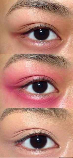 3. با استفاده از رژ قرمز مانند عکس زیر سیاهی زیر چشم خود را پنهان کنید.