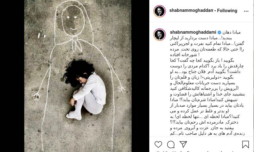 به گزارش سایت طلا،شبنم مقدمی بازیگر سینما در پی درگذشت آزاده نامداری در اینستاگرام نوشت: «مبادا دهان ببندید!...مبادا دست بردارید از لیچار گفتن!...مبادا تمام کنید نفرت و لجنپراکنی را! حتی حالا که طعمهتان روی تخت ِ مرده شورخانه افتاده!