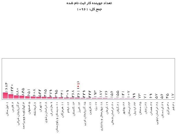 بر اساس آخرین گزارش عملکرد طرح مشوق بیمه ای تاکنون ۱۰ هزار و ۹۶۱ نفر از فارغ التحصیلان و داوطلبان جویای کار در این طرح ثبت نام کرده و ۵۹۲۸ نفر موفق به عقد قرارداد و جذب بازار کار شده اند. در بین استانهای کشور، خوزستان و فارس بیشترین تعداد جویندگان کار ثبت نام شده را به خود اختصاص داده اند.