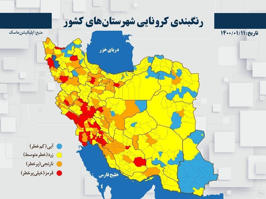 تعدادی شهرستان جدید در استانهای مختلف کشور در فهرست شهرهای قرمز و نارنجی قرار میگیرند و مشمول محدودیتهای کرونایی میشوند.