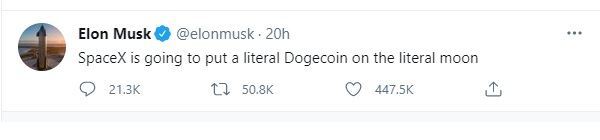 ایلان ماسک در توییتش نوشته که اسپیس اکس می‌خواهد دوج کوین را روی ماه قرار دهد.