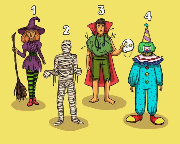 اگر خوب دقت کنید، می بینید که همه لباسها به جز شماره 3 کاملاً خوب ساخته شده اند. او هنگام ارتکاب جرم قبلاً گوشی پزشکی خود را پوشیده بود و عجله کرد تا هر چیزی را که پیدا کرد برای وجود یک لباس امتحان کند: ماسک جمجمه، یک شنل خون آشام، شلوار هالک و او حتی یک بوته را به عنوان یک تیشرت استفاده می کند.