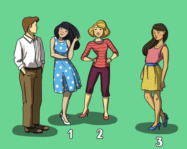 پاهای ما معمولا و ناخودآگاه به سمت شخصی که بیشتر به او علاقه مند هستیم، قرار می گیرد. بنابراین در این حالت، این آقا، دختر شماره 3 را دوست دارد.