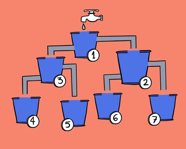 توجه داشته باشید که سطل 3 پایین تر از سطل 2 است.