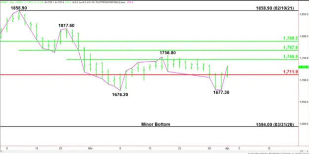 محدوده کوتاه مدت بین 1756 دلار و 1677 دلار است و محدوده کوچکتر بعدی بین 1676 دلار تا 1817 دلار است. میانگین این محدوده در سطح قیمت 1746 دلار هدف بلقوه بعدی است.