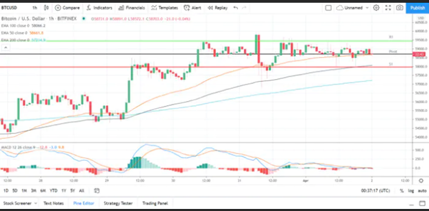 بیت کوین روز 5 شنبه با کاهش 0.12 درصدی قیمت مواجه شد. پس از نزول قیمت 0.07 درصدی روز 4 شنبه بیت کوین روز خود را با قیمت 58724 دلار به پایان برد. قیمت بیت کوین روز بعد را با نوسان زیادی شروع کرد و قبل از معکوس شدن روند صعودی، به قیمت 59483 رسید. با برخورد بیت کوین به مقاومت 60188 دلاری و کافی نبودن حجم معاملات، به پایین ترین قیمت روز یعنی 57955 دلار رسید. نمودار قیمت بیت کوین برای دوری از حمایت 57115 دلاری به سمت حمایت اخیر خود در 59000 دلار حرکت کرد. با حمایت حجم زیاد معاملات ماه گذشته (مارس)، روند صعودی کوتاه مدت بیت کوین ادامه یافت.