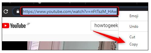 سپس، با کلیک و کشیدن نشانگر خود روی متن، URL ویدیو را در نوار آدرس مرورگر انتخاب کنید. کلیک راست کرده و کپی را از منوی زمینه انتخاب کنید.