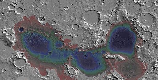 این مناطق همچنین از روشنایی و همواری نسبتا مداومی برخوردار بودند، درحالی که این ویژگیها در اطراف این سطوح بیشتر تغییر میکند. اینجا در زمین، زیر یخهای گرینلند، این ارتباط شواهد خوبی بر وجود دریاچههای زیرزمینی است. در مریخ نیز احتمالا همین طور است. چشم اندازهایی برای آب و زندگی در این جا یک مسئله حل نشده باقی میماند؛ این که مریخ چگونه میتواند در زیر لایههای رسوبی قطب جنوب خود، ظرفیت نگه داری این مایعات را داشته باشد، جایی که دما باید بسیار کم باشد، احتمالا ۱۲۰- درجه سلسیوس.