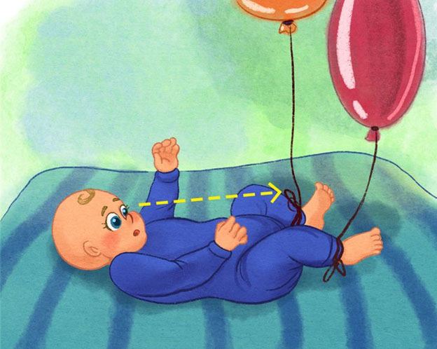 یکی از راه های بازی با بادکنک این است که بادکنک های پر از هلیوم را به دور دست ها یا پاهای کودک خود ببندید و فقط اجازه دهید بدن آنها، بادکنک ها را حرکت دهد. این یک روش عالی برای تقویت مهارت های حرکتی ناخوشایند و عضلات چشم برای بهبود ردیابی و تمرکز است. هنگامی که کودک دست و پاهای خود را حرکت می دهد، می توانند حرکت بادکنک ها را بشنوند و سر و صدا ایجاد می کنند، که همچنین می تواند به آنها در یادگیری منطق علت و معلول کمک کند.