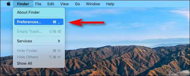 ابتدا باید در منوی موجود در بالای صفحه، بر روی “Finder” کلیک کرده و سپس در منوی ظاهر شده، گزینه “Preferences” را انتخاب کنید.