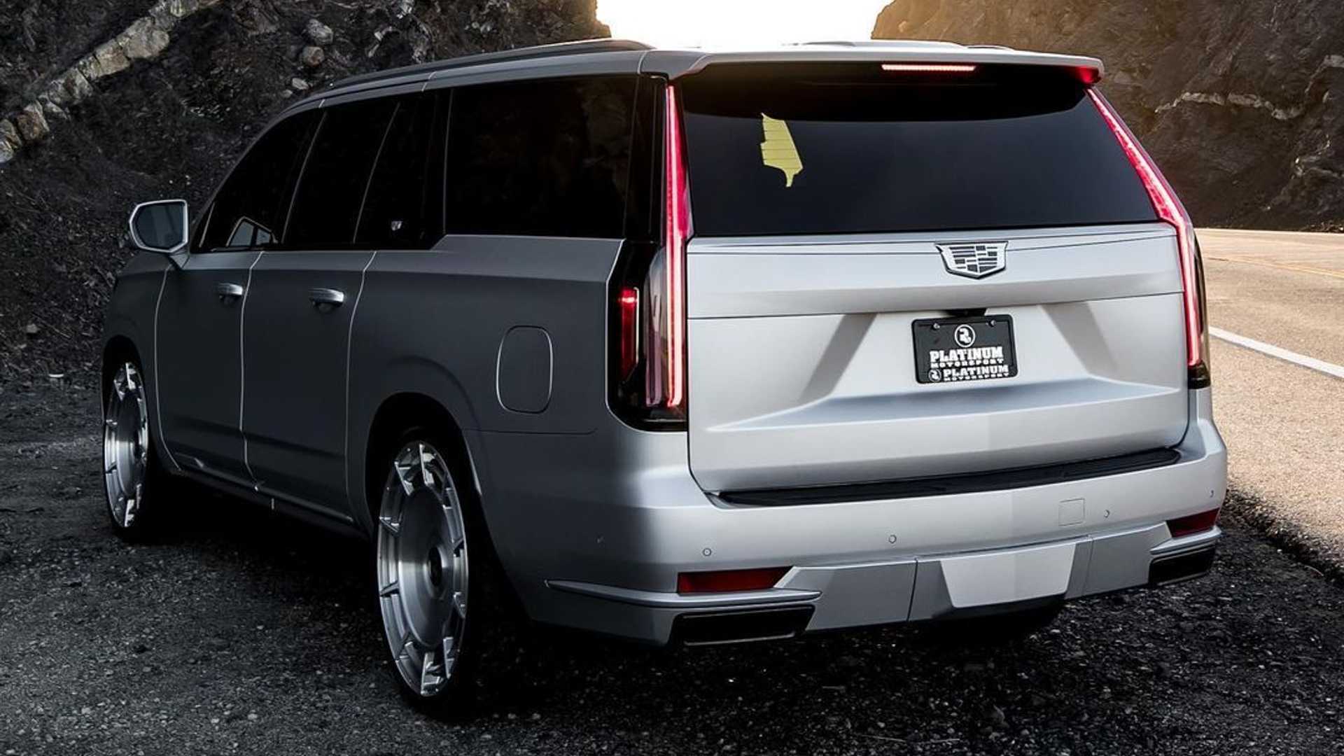 جلو پنجره به شکل مشبک در آمده و نشان کادیلاک هم به صورت تک رنگ، بر پیشانی آن، چسبانده شده است. پلاتینوم موتور اسپرت همزمان با پایین آوردن ارتفاع تعلیق خودرو، از رینگهای ۲۶.۰ اینچی هم برای آن، استفاده کرده است. شیشههای خودرو هم برای زیبایی بیشتر، به صورت رنگی در آمده اند.
