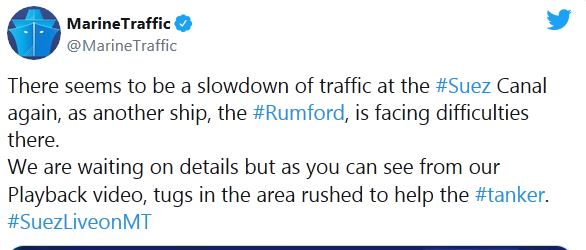 به نوشته وب سایت مارین ترافیک، موسسه ردیابی کشتی ها، یک کشتی دیگر برای مدت کوتاهی در کانال سوئز گیر کرد.