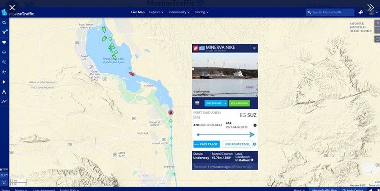 تصاویر مربوط به ترافیک کانال در وب سایت مارین ترافیک نشان داد، یک کشتی بعدازظهر امروز به وقت قاهره، این کانال را مسدود کرد و یدک کشهایی با سرعت برای تکان دادن آن به سویش هجوم بردند.