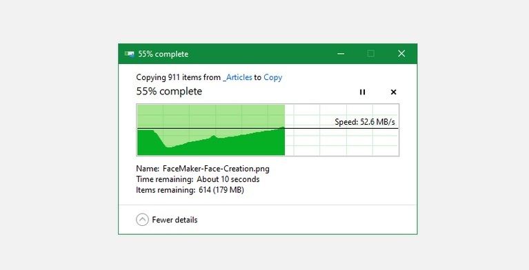 ویندوز ۸ و ۱۰ نسبت به ویندوز ۷ رابط کاربری بهتری برای کپی فایلها دارند. در این دو سیستم عامل نه تنها سرعت کپی افزایش داشته، بلکه سرعت انتقال فایلها از طریق یک نمودار در اختیارتان قرار میگیرد.