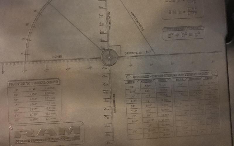 اگر ریاضی را به خوبی بلد نیستید، وانت نسل فعلی Ram ۱۵۰۰ به شما آموزش میدهد. کافی است محفظه ذخیره در بغل کنسول وسط را باز کنید تا تعدادی از معادلات ریاضیاتی مانند قضیه فیثاغورس، نمودار تقسیم به ده دهی و فرمولهای مثلثاتی را پیدا کنید. در حالی که احتمال نیاز به استفاده از آنها کم است، نمودار تبدیل آچار استاندارد به متریک موجود در صفحه راهنما میتواند در شرایط واقعی مفید واقع شود.