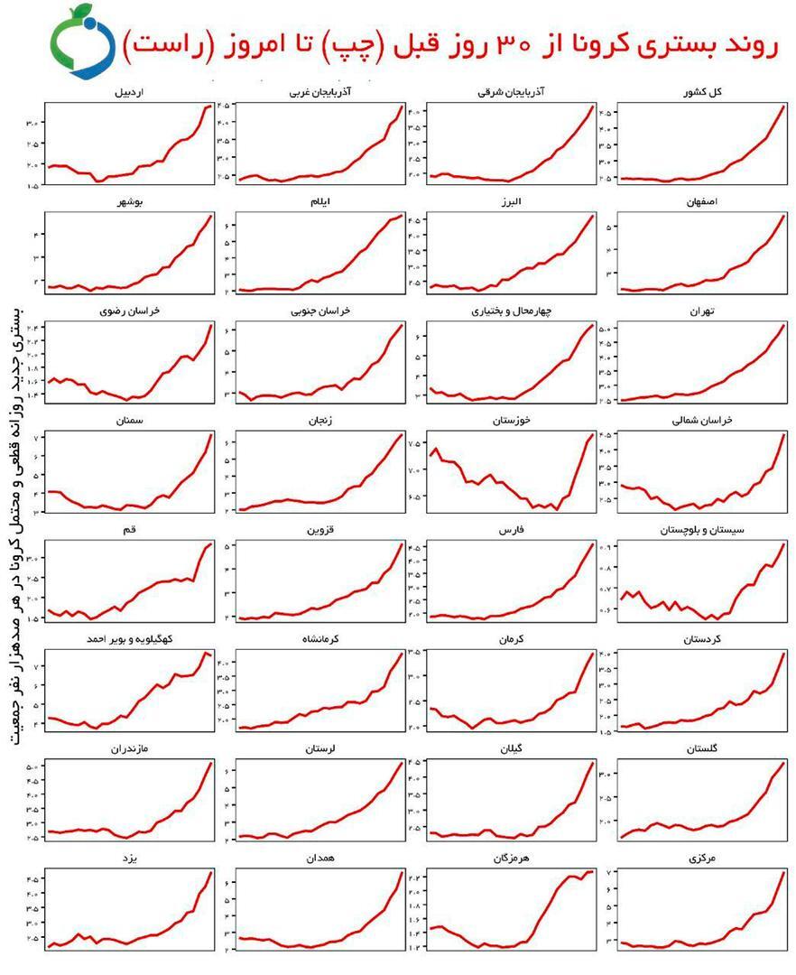 بر اساس دادههای معاونت بهداشت وزارت بهداشت آمار بستری کرونا در تمام کشور به شدت در حال افزایش است.