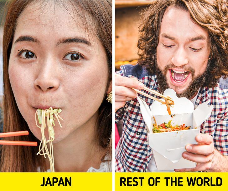 هورت کشیدن و ملچ و ملوچ کردن هنگام خوردن غذا را گرچه در بیشتر کشورها امر ناپسندی میدانند، اما در ژاپن اصلاً اینگونه نیست. در حقیقت ژاپنیها اگر نودل تان را با سر و صدا نخورید این کار را بی ادبانه میدانند.