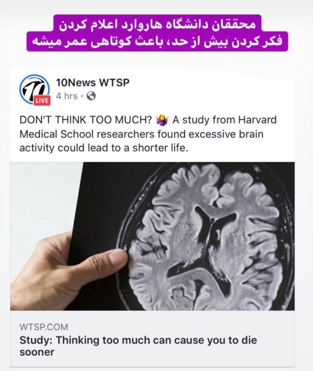 محققان دانشکده پزشکی هاروارد دریافتند، تفکر زیاد موجب کاهش پروتئینی در مغز شده که به سلامت مغز آسیب میرساند.
