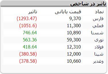 صنایع پتروشیمی خلیج فارس، ملی صنایع مس ایران و پالایش نفت اصفهان نسبت به سایر نمادها بیشترین تأثیر منفی و در مقابل سرمایه گذاری تأمین اجتماعی، پتروشیمی نوری و فولاد مبارکه اصفهان نسبت به سایر نمادها بیشترین تأثیر مثبت را روی بورس گذاشتند.