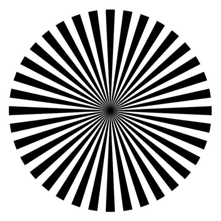 5. چشم؛ یک چشم را ببینید و چند قدم از مانیتور فاصله بگیرید. اگر برخی از خطوط مشکی تصویر زیر کمرنگ تر و برخی پررنگ تر باشند چشم شما احتمالا دچار بیماری آستیگماتیسم شده است.
