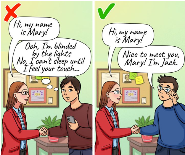 اطمینان حاصل کنید که نام هرکسی را که با شما مصاحبه می کند می دانید و هنگام معرفی خود حواس او را پرت نکنید.