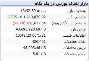 بازار سرمایه روزی پرنوسان را پشت سر گذاشت و در حالی که شاخص کل بورس در ساعات ابتدایی معاملات روندی افزایشی داشت، در ساعات میانی تا یک میلیون و ۲۱۷ هزار واحد کاهش یافت و مجددا به یک میلیون و ۲۲۰ هزار واحد رسید.