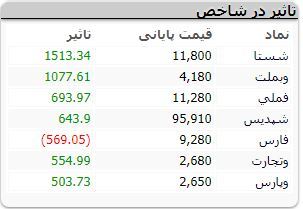 سرمایه گذاری تامین اجتماعی، بانک ملت، ملی صنایع مس ایران و پتروشیمی پردیس نسبت به سایر نمادها بیشترین تاثیر مثبت و در مقابل صنایع پتروشیمی خلیج فارس نسبت به سایر نمادها بیشترین تاثیر منفی را روی بورس گذاشتند.