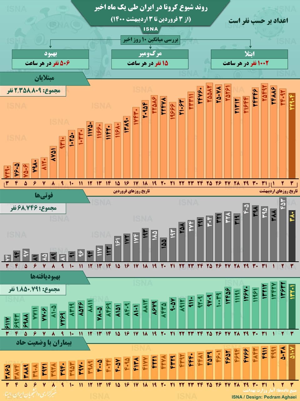 جدیدترین آمار کرونا در ایران 3 اردیبهشت 1400