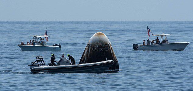 کپسول کرو دراگون که در ماه مه ۲۰۲۰ باب بهنکن و داگ هرلی را به خاک آمریکا بازگرداند