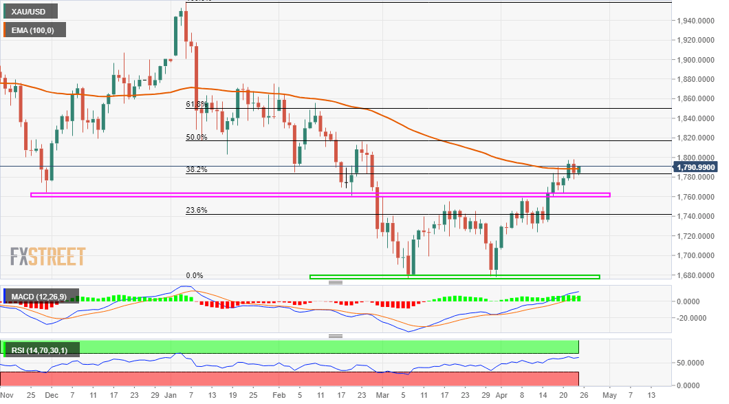 در طرف مقابل در صورتی که طلا نتواند مقاومت 1800 دلاری را به دست آورد و یک حرکت نزولی را آغاز کند اولین سطح پشتیبانی آن 1760 تا 1765 دلار خواهد بود.