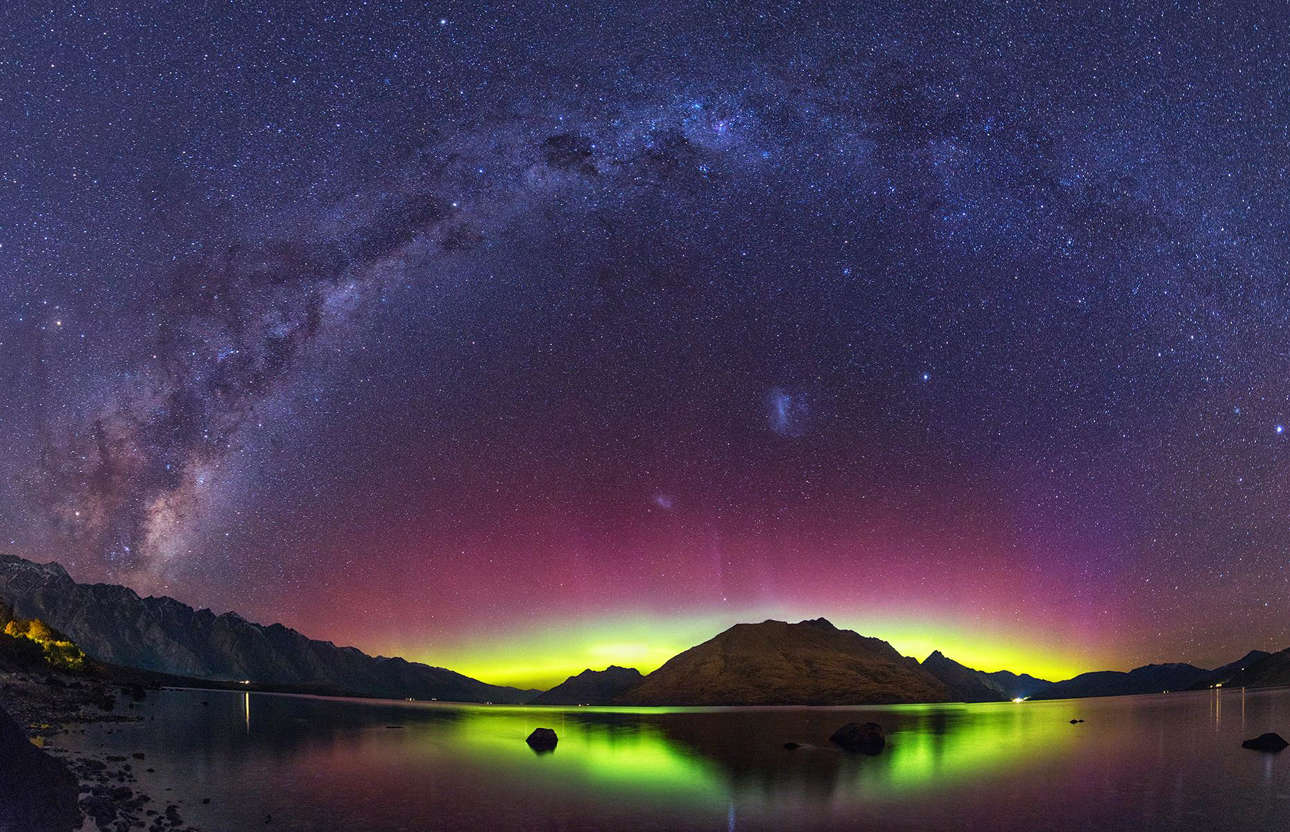 در آسمان قطب جنوب پرده ای از نور های رنگارنگ می درخشد که در نتیجه برخورد الکترون های انرژی با اتم ها و ملکول های مختلف می باشد.