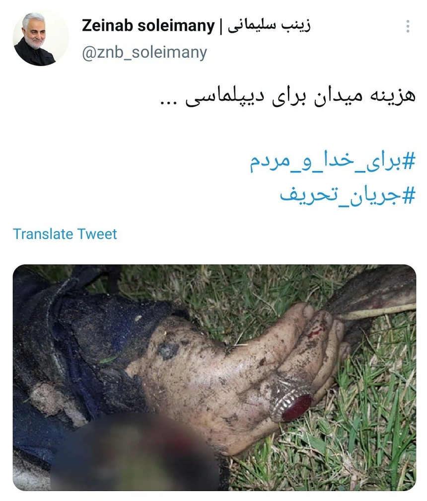 در پی انتشار فایل صوتی ظریف از سوی شبکه سعودی اینترنشنال و اولین واکنش ظریف به این ماجرا، دختر سردار سلیمانی با انتشار توئیتی معنادار نسبت به این ماجرا واکنش نشان داد.