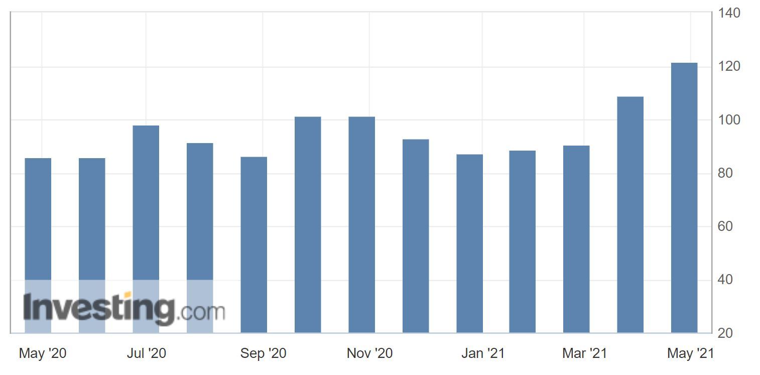 طی یک ماه گذشته شاخص اطمینان مصرف کننده از رقم 109.7 به 121.7 رسیده است که نشان دهنده خوش بینی مصرف کنندگان نسبت به بهبود شرایط اقتصادی است.
