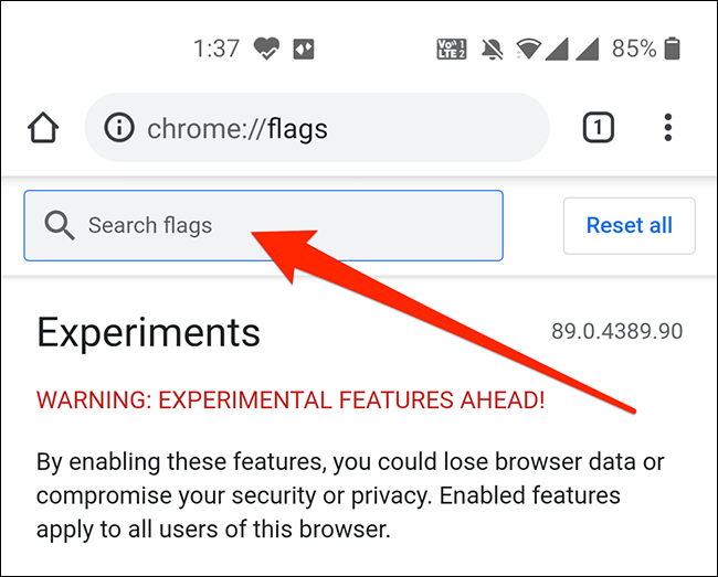 برای فعالسازی امکان اسکرینشات از صفحات در حالت ناشناس ابتدا مرورگر کروم را اجرا کرده و در نوار جستوجو، عبارت chrome://flags را وارد کرده و گزینهی اینتر یا تایید را لمس کنید.