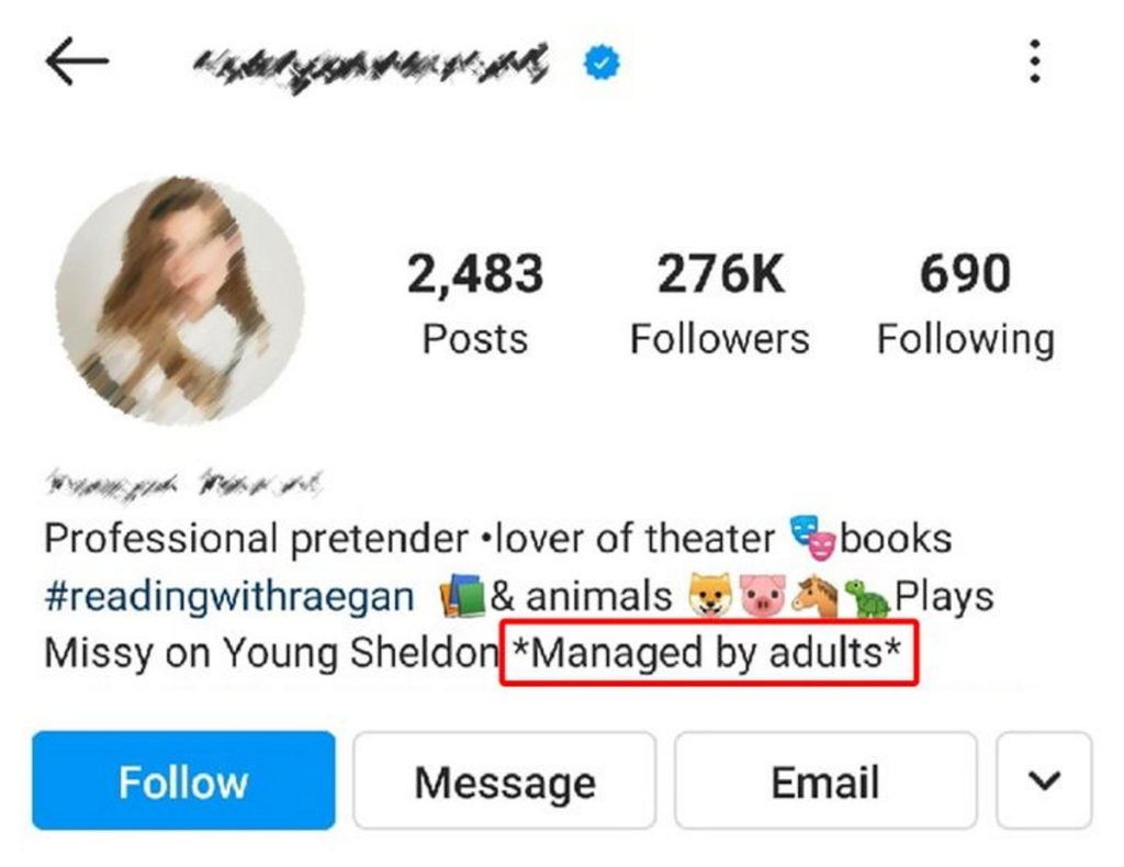 بسیاری از شبکههای اجتماعی اجازه نمیدهند تا افراد زیر ۱۳ سال برای خود حساب داشته باشند. بازیگرانی که ۱۳ سال به پایین هستند میتوانند توسط پدر و مادرشان صفحات اجتماعی خود را داشته باشند.
