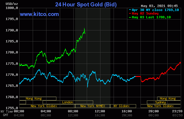 قیمت هر انس طلا در لحظه نوشته شدن این متن 1795 دلار می باشد که نسبت به روز پیش 26 دلار افزایش قیمت داشته است. نقره نیز با حدود یک دلار افزایش 26.90 دلار معامله می شود.