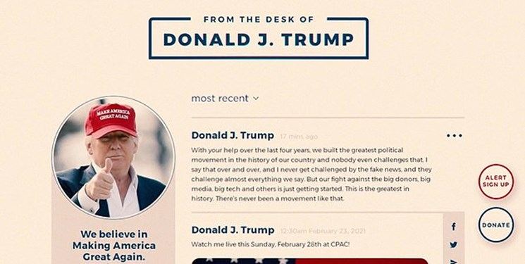 «دونالد ترامپ» رئیس جمهور سابق آمریکا شامگاه سهشنبه از راهاندازی شبکه اجتماعی خود با نام "From the Desk of Donald J. Trump " خبر داد.