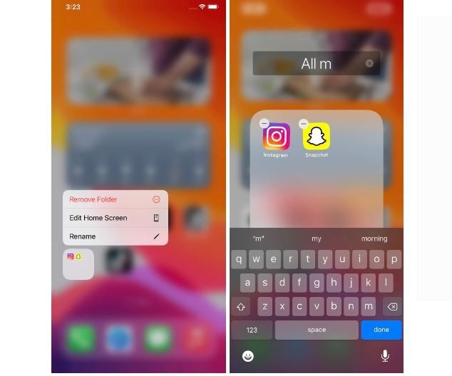 سیستم عامل آی او اس، با توجه به نوع اپلیکیشنهایی که انتخاب کردهاید، یک نام برای ان انتخاب میکند. اما اگر قصد تغییر نام آن را داشتید، میتوانید روی پوشه لانگ پرس کرده و گزینه Rename را انتخاب کنید. سپس نام جدید را در آن تایپ کنید.