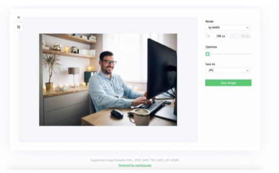 Resizing.app یک ابزار ویرایش عکس رایگان با رابط کاربری فوق العاده ساده است. می توانید اندازه تصویر، عرض، ارتفاع، درصد، بزرگترین ضلع یا مقدار سفارشی دیگر را تغییر دهید. پس از تغییر اندازه تصویر، را با مقیاس لغزنده بهینه کرده و تبدیل کنید. اشکال این ابزار این است که هنگام بهینه سازی، اندازه پرونده را نشان نمی دهد. این می تواند در اینکه چه زمانی فراآیند sliding scale را متوقف کنید مشکل ساز شود.