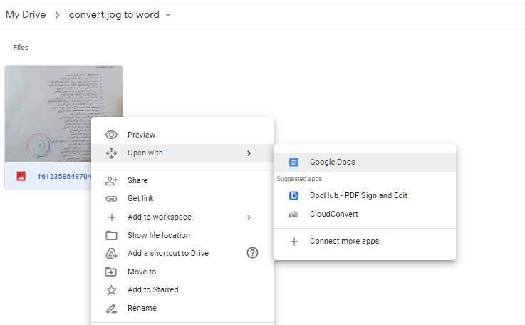 فایلی را که از طریق ویژگی Google Docs بارگذاری کرده اید باز کنید تا تصاویر را به متن نوشتاری تبدیل کنید.