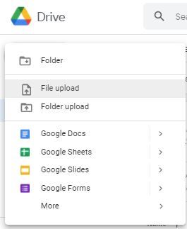از فهرست جدید، بارگذاری پرونده را انتخاب کنید.