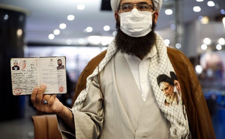 فردی با ظاهری کفن پوش، قرآن و عصا به دست و ماسکی از پرچم ایران به صورت، برای ثبتنام در انتخابات ریاست جمهوری وارد وزارت کشور شد.
