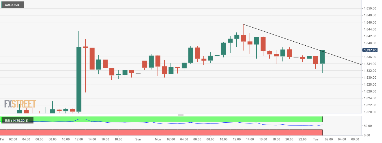 با توجه با ثابت ماندن بازده خزانه داری ایالات متحده و همچنین عدم توانایی شاخص دلار برای بهبود بیشتر و همچنین سیگنال های متناقض فدرال رزرو درباره سیاست های مالی، قیمت طلا در حال نوسان زیر 1840 دلار است.
