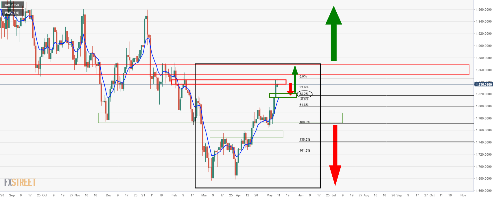 در صورتی که طلا بتواند مقاومت پیش روی خود در سطح 1850 دلار را بشکند یک سلسله حرکت صعودی جدید را آغاز کرده که قیمت ان را به سطوح بالاتری سوق می دهد.