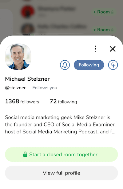 اگر می خواهید یک اتاق راه اندازی کنید باید از گزینه + Start a Room استفاده کنید که معمولاً در قسمت بالای اپلیکیشن و پروفایل شما قرار گرفته است. پس از آن نوع اتاق را انتخاب کرده و سپس نوع موضوع را در قسمت Add a Topic اضافه کنید و در ادامه نامی برای اتاق خود در نظر بگیرید. آخرین مرحله نیز گزینه Let’s go است.